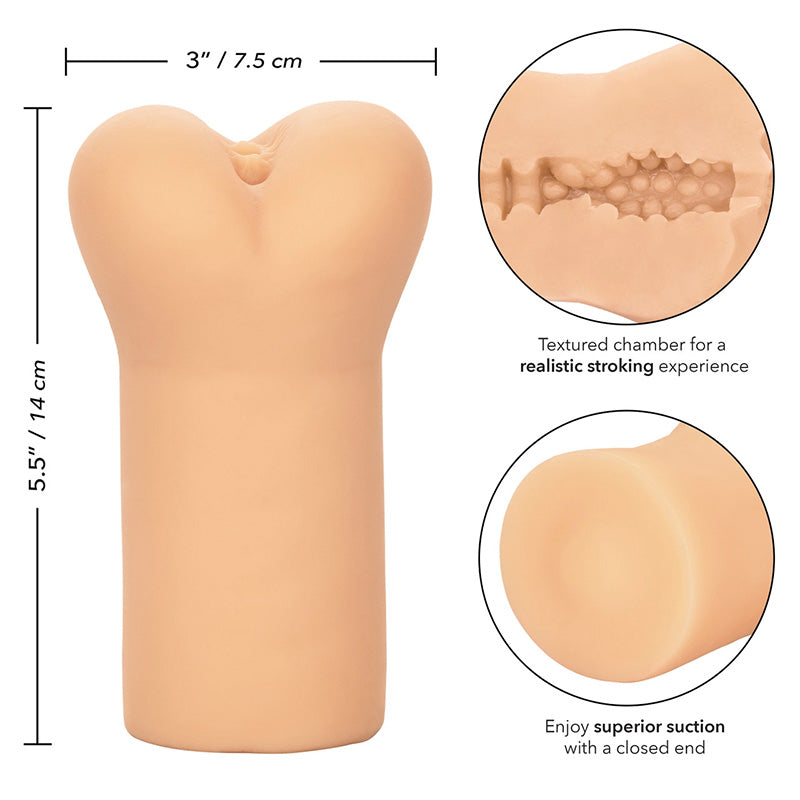 Indulge in thrilling wet dreams with the filthy Cheap Thrills French Maid masturbation stroker. The closed-end design provides superior suction, while the uniquely textured chamber and ultra soft, stretchy Pure Skin material thrill with life-like sensation. Whether indulging at home or wherever pleasure takes you, the compact 5.5” (14 cm) stroker is the teasing travel companion you’re craving.