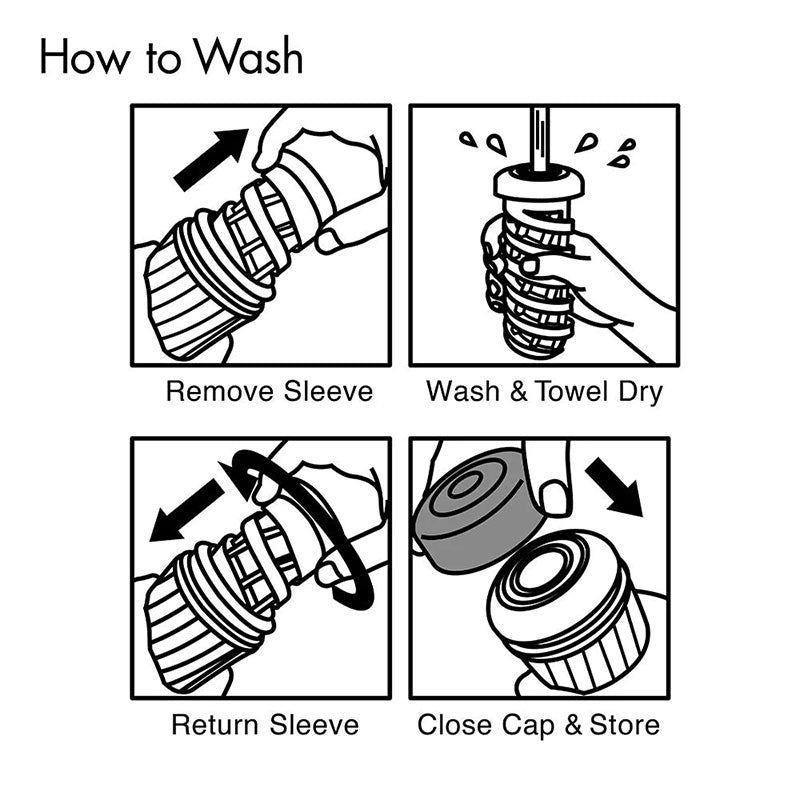 Spiralling ribs along the internal elastomer sleeve allow air to flow out of the case upon insertion. Additionally, the lower ridges create air pockets inside the case, surrounding you with soft pressure from all sides. The Ripple sleeve is lined with gentle waves for enhanced pleasure.